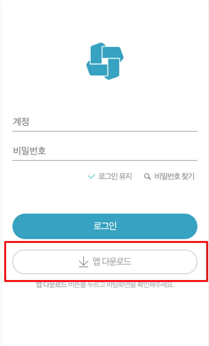 1. 모바일 브라우저에서 그룹웨어 접속 주소를 입력하여 접속 후 메신저 앱 다운로드 버튼을 클릭하여 다운로드 받습니다.