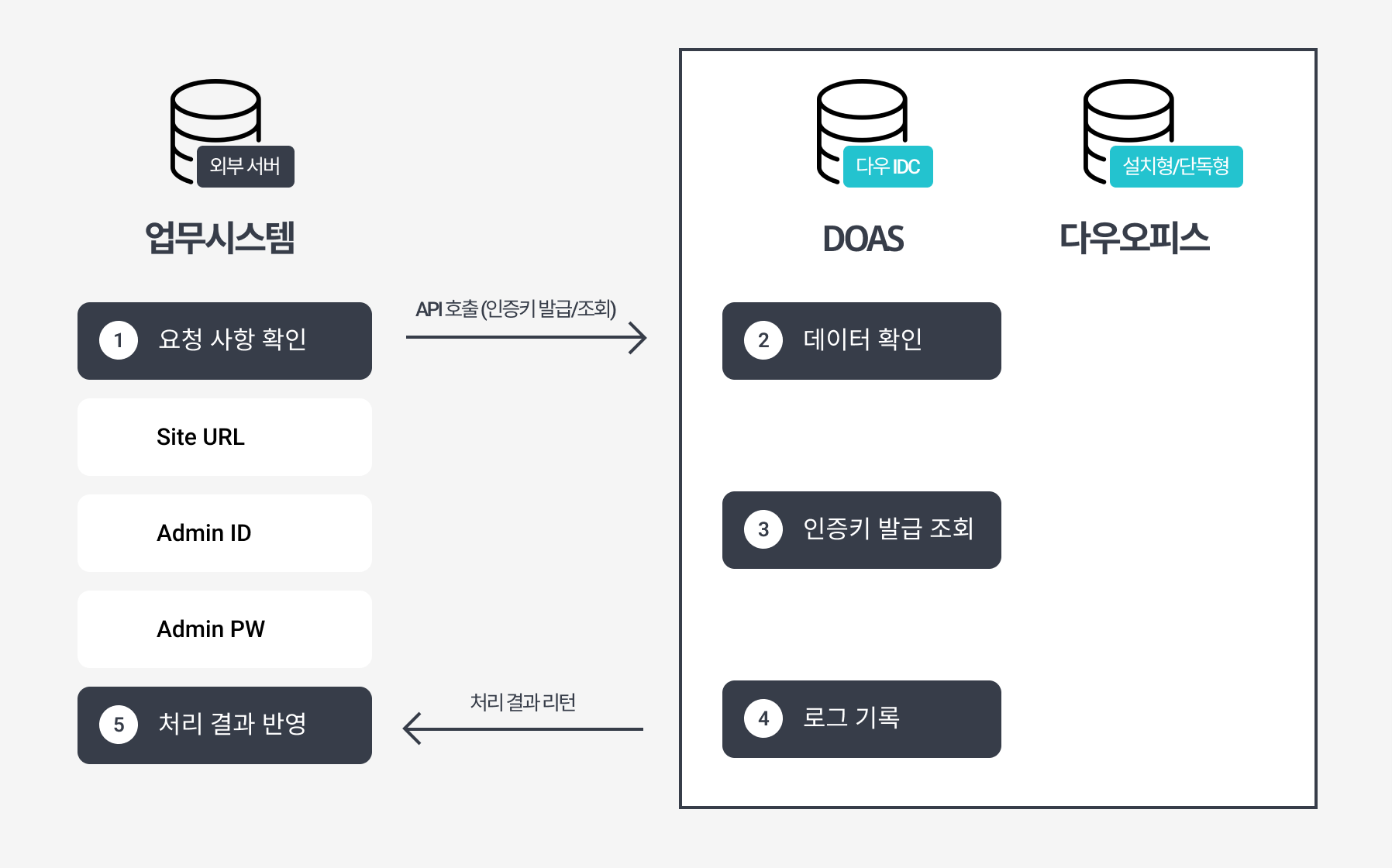 1. 인증키 발급/조회 (업무시스템 -> 다우오피스)