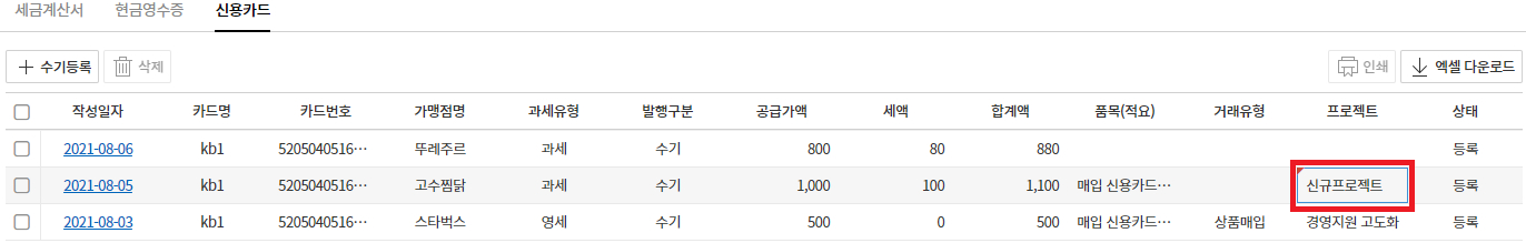 4. 매입내역에서 비용별로 프로젝트 등록