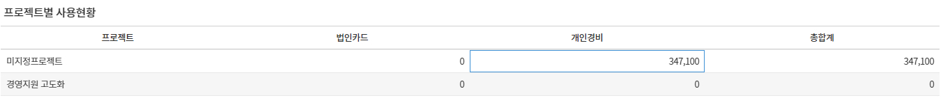 5. 경비사용현황에서 프로젝트별 비용 확인 가능