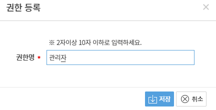 2. 권한명을 입력, [저장] 선택하여 권한그룹 생성