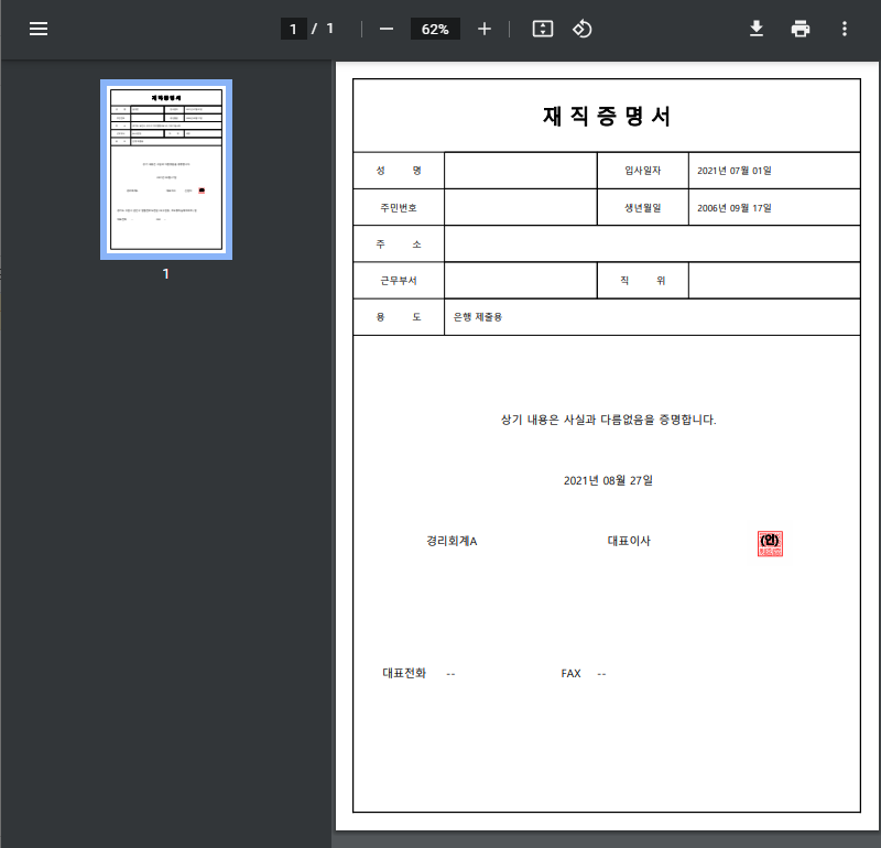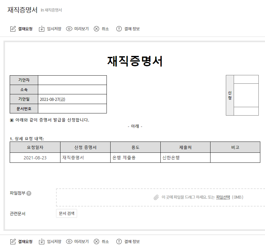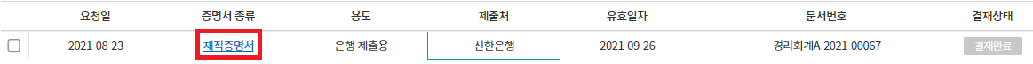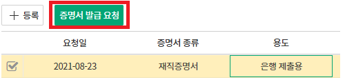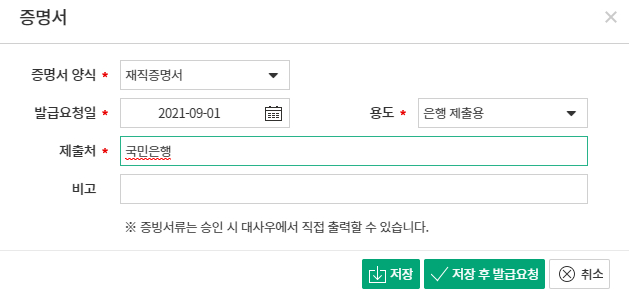 경영지원 서비스에서 증명서발급 기능을 제공합니다.