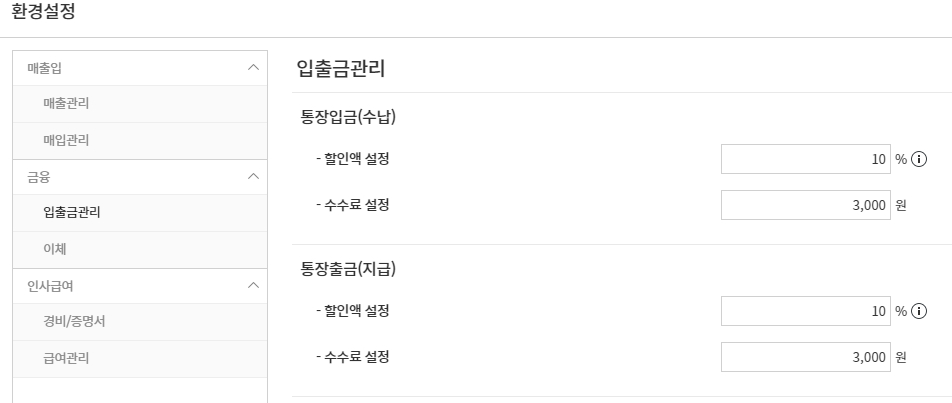일정 기한내 수금/지급할 경우 지급일로부터 일수를 계산하여 할인을 하는 경우, 행사 프로모션등의 사유가 거래 이후 발생하여 적용된 경우등 매출할인, 매입할인 거래가 발생할 경우 할인액 한도를 총 금액의 일정 비율 내에서 설정할 수 있습니다.