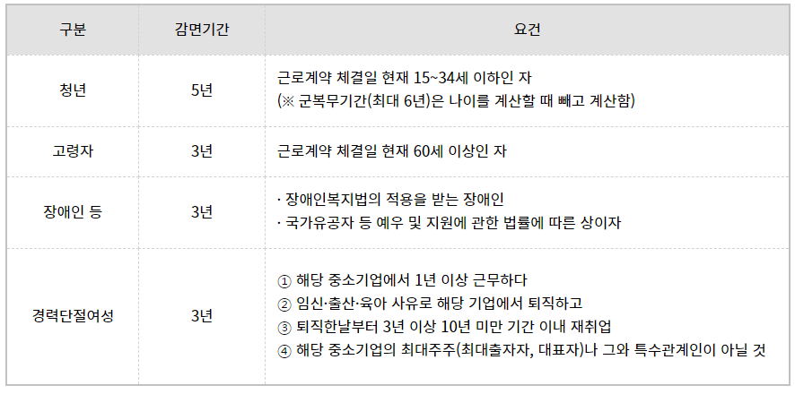 청년(15~34세)·60세 이상의 고령자·장애인·경력단절여성이 일정 요건을 갖춘 중소기업체에 취업하는 경우
