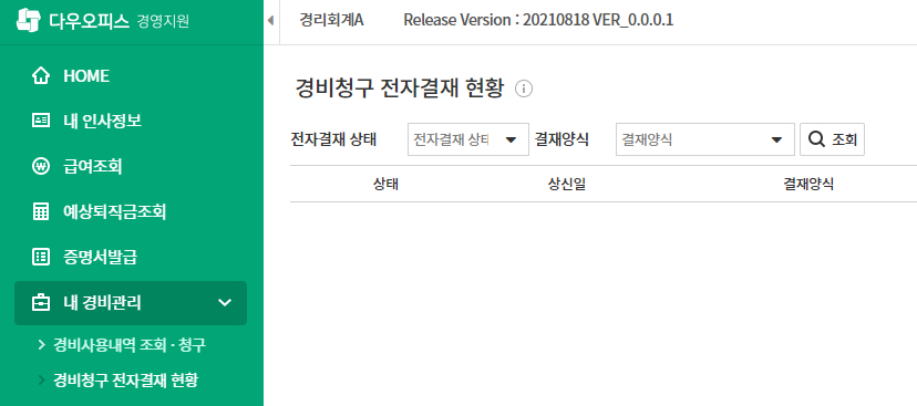 네, 전자결재 문서 링크를 통해 바로 조회할 수 있습니다.경영지원 > 내경비관리 > 경비청구 전자결재 현황 목록에서 전자결재를 선택하면다우오피스로 상신한 전자결재 문서가 바로 조회됩니다.