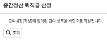 메뉴위치 : 인사급여 > 퇴직급여 > 퇴직금대장(작성) > 중간정산(탭)