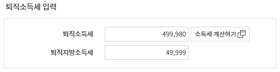 4. 계산된 퇴직급여 금액 기준으로 퇴직소득세 수기 계산하여 입력