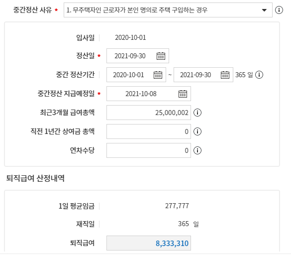 3. 중간정산 항목 입력
