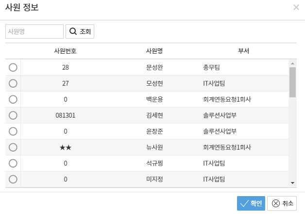 2. [조회] 선택 후 사원 선택