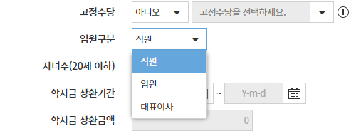 (임원구분은 급여계산시 구분을 위한 항목으로 해당 직원의 실제 직위가 변경되지는 않습니다.)