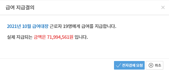 2. 당월 총 지급급액 및 인원 확인 후 [전자결재 요청] 선택
