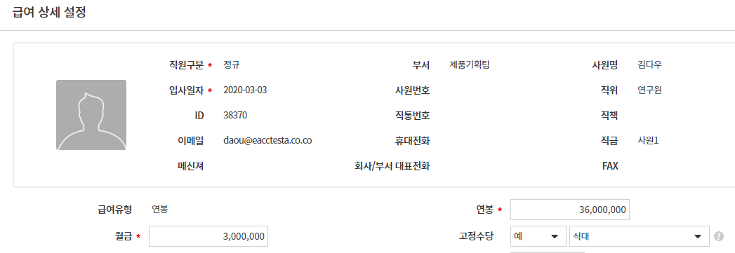 급여계산 기준을 연봉 또는 월급으로 설정하여 관리하실 수 있습니다.