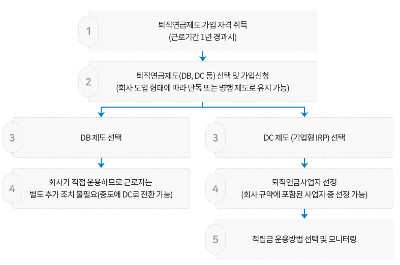 중 하나 이상의 제도를 설정하여야 합니다. (근로자퇴직급여보장법 제4조제1항)