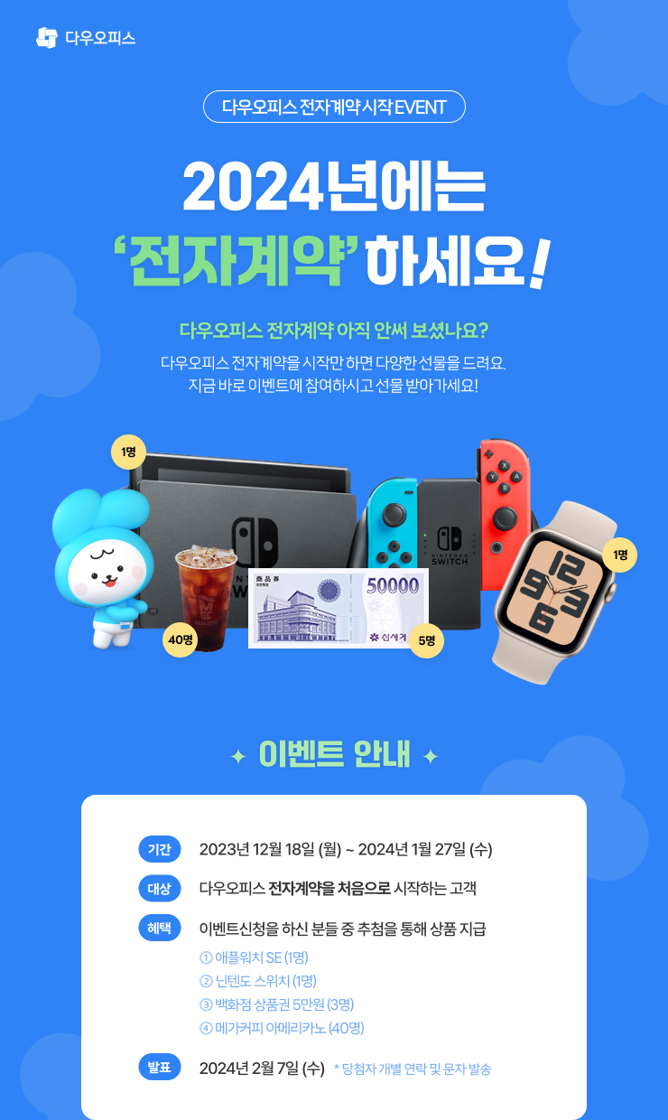 다우오피스 전자계약 시작 방법 이벤트 신청하기
