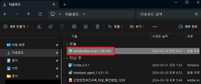 - 다운로드된 실행파일(remote.daou.co.kr) 실행