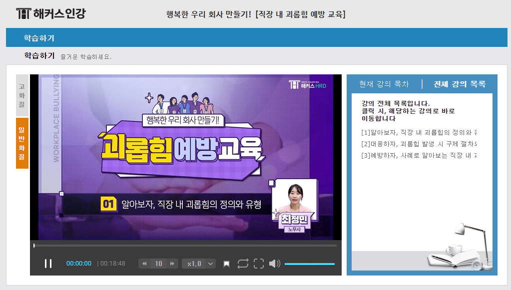 온라인 동영상 강의로 법정의무교육을 수강하실 수 있습니다.