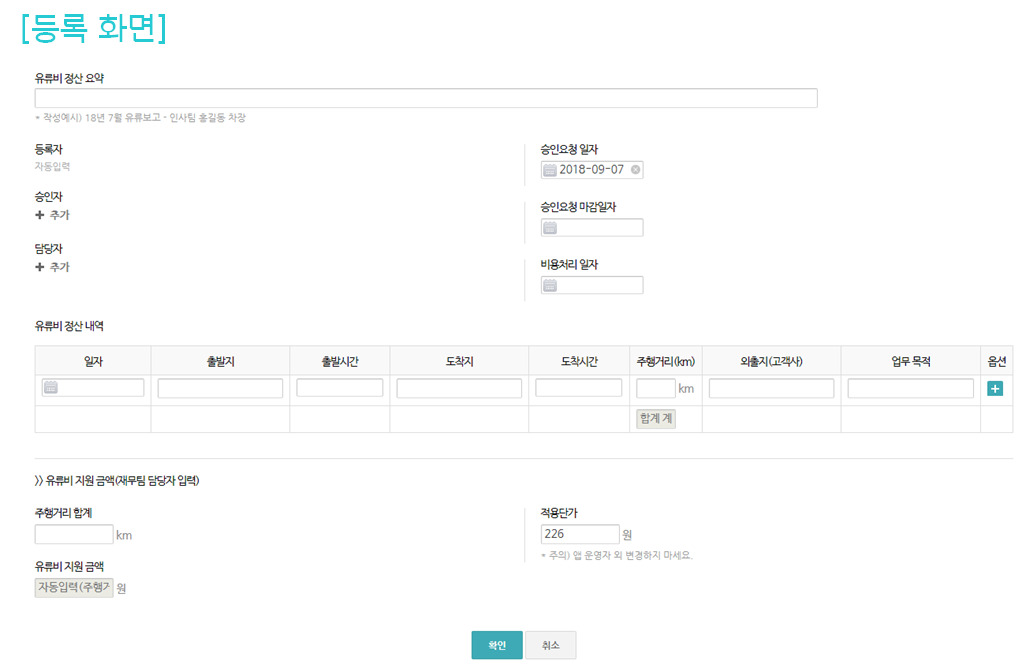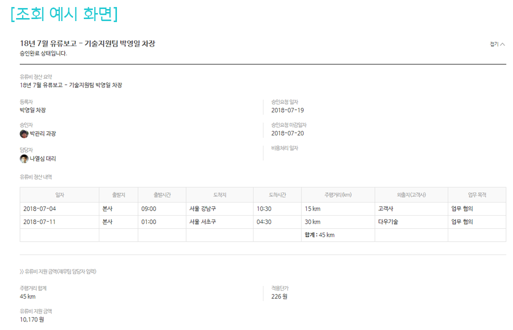 업무용도로 개인차량 사용시 유류비 신청 및 비용지급 이력 관리