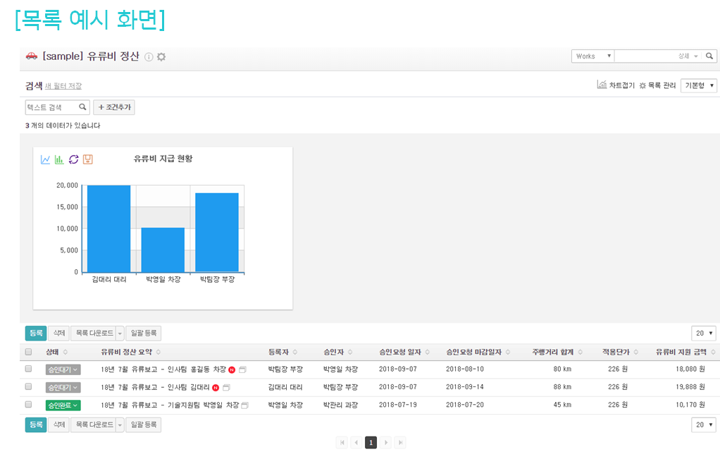 사내 유류비를 신청하고, 승인 및 비용 처리 상태까지 관리하는 앱