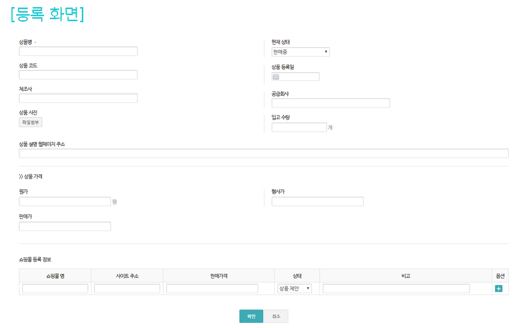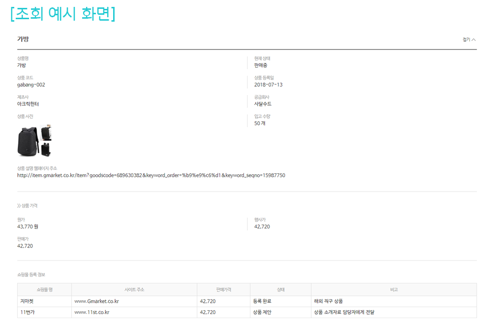 사내에서 관리하는 상품정보 등록 및 쇼핑몰별 등록 현황 정보 공유