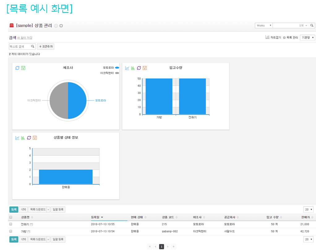 상품관리 앱 주요 화면은 아래와 같습니다.