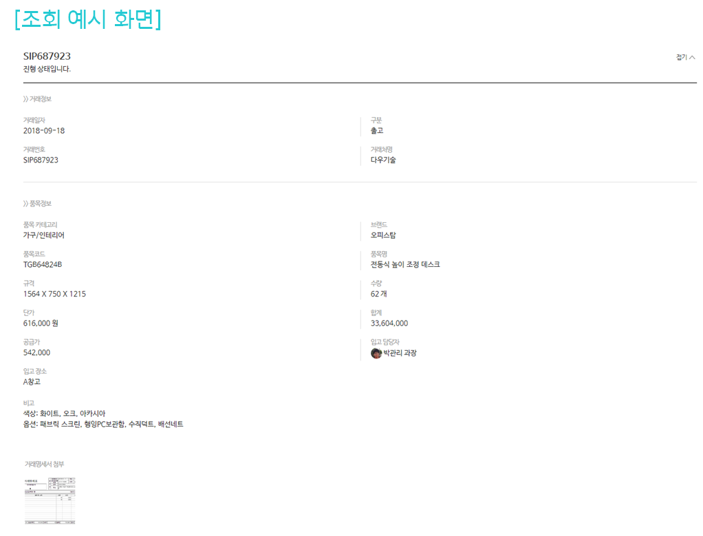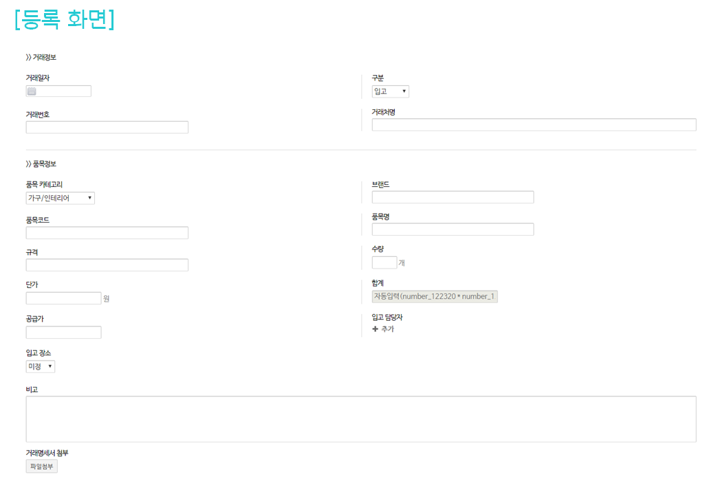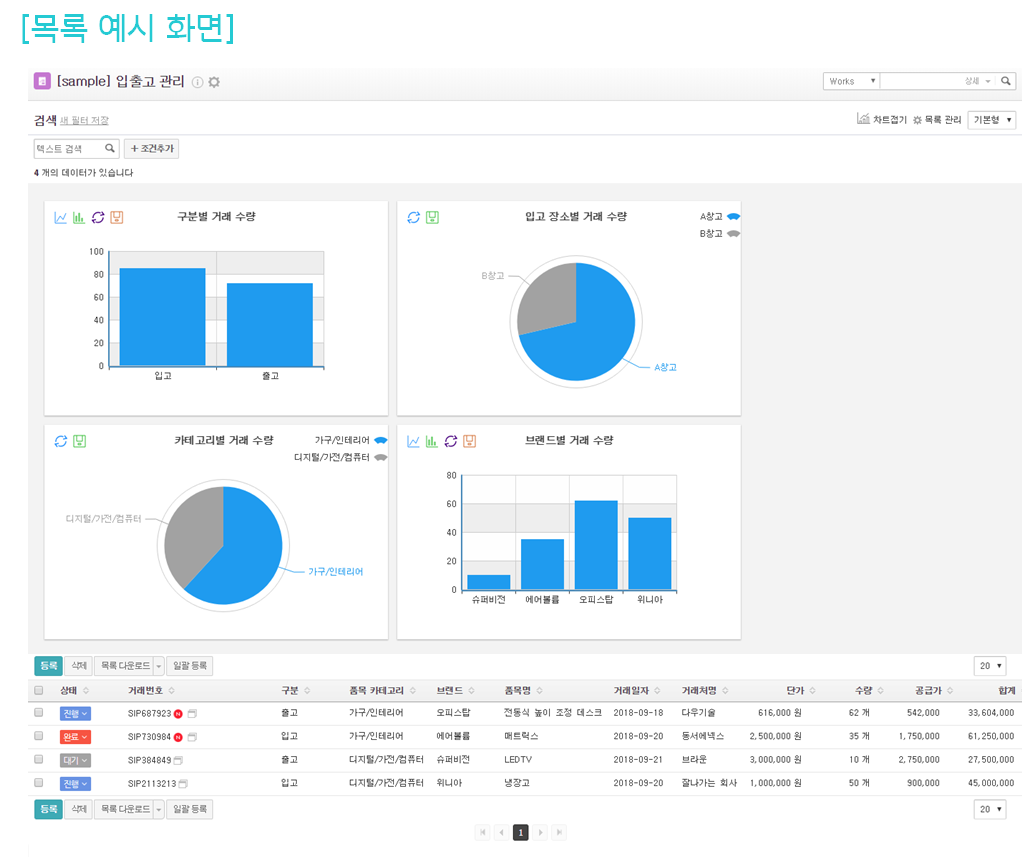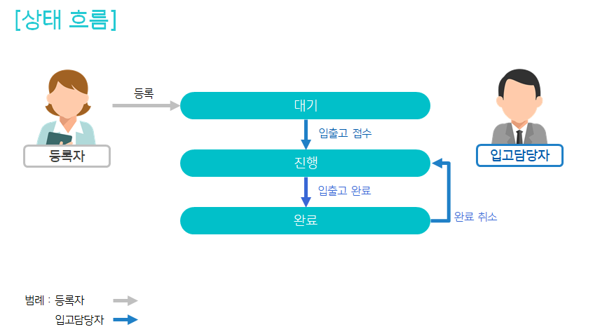 물품 입출고 정보를 등록하여 창고별 입출고 현황 관리