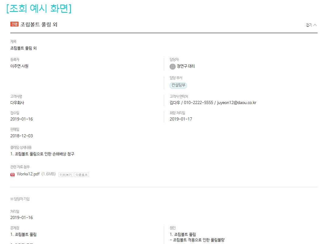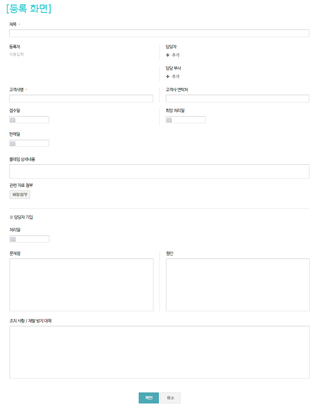 고객사 클레임 접수 및 담당자의 문제점 파악을 통한 재발방지 대책 정보 관리