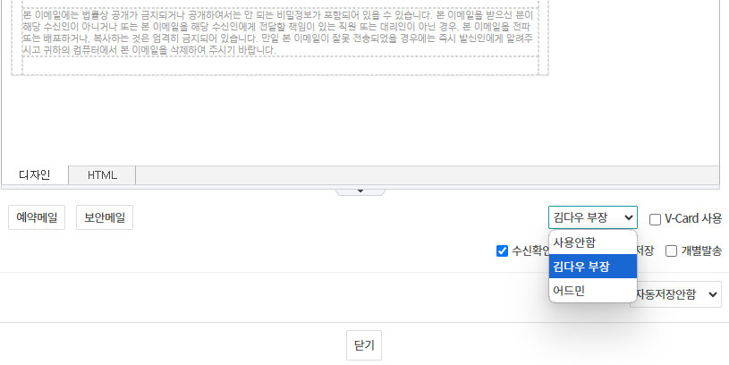 여러개의 메일 서명을 등록해두고 발송시 선택해서 적용하는 방법