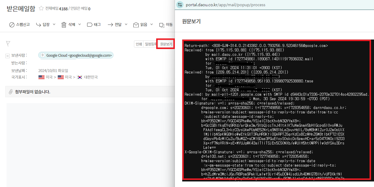 (내 IP와 메일 발송 서버 IP 모두 조회)