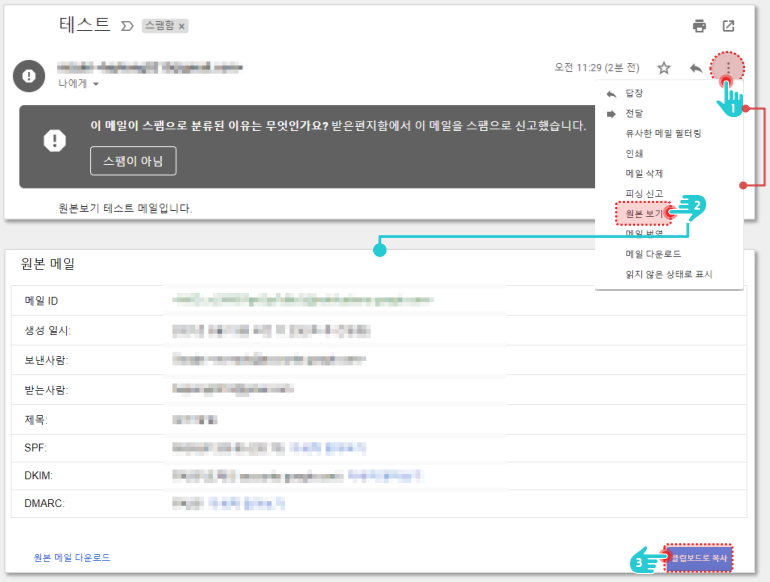 스팸 메일과 관련된 도메인 설정을 우리 회사 도메인에 적용해야 스팸 정책으로 인해 발송 차단되는 현상을 방지할 수 있습니다.