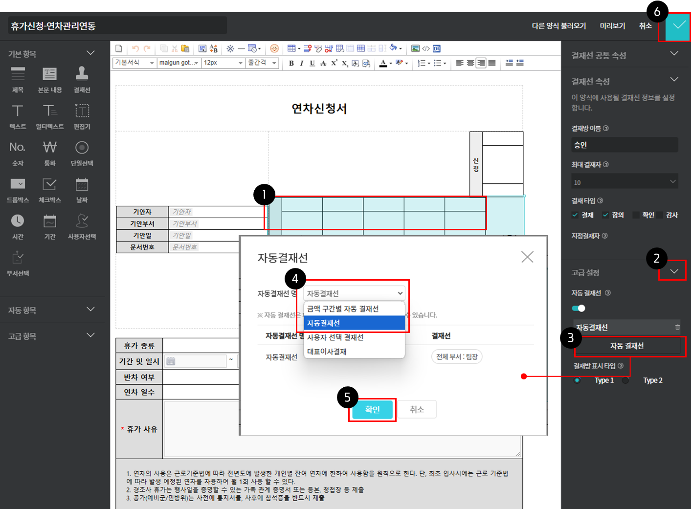 - 자동 결재선 설정 및 양식 적용