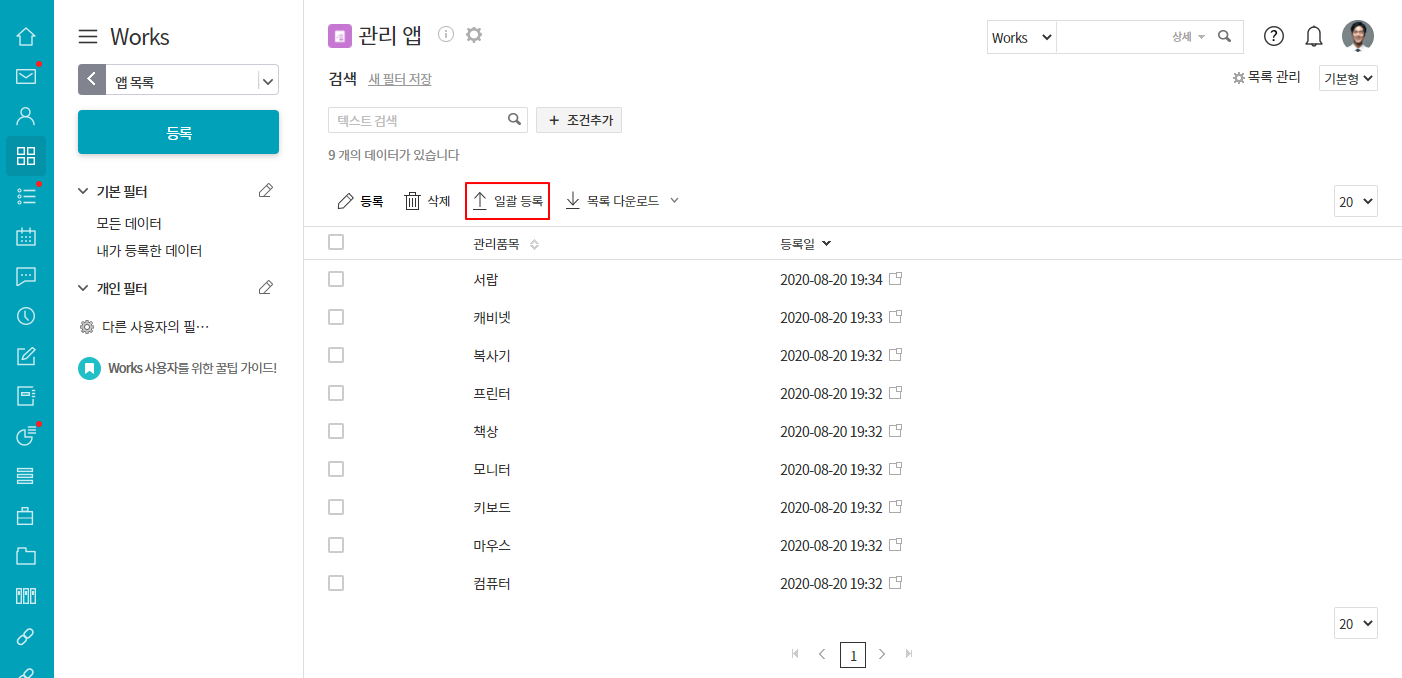 동일하지 않으면 해당 값을 제외하고 등록됩니다.