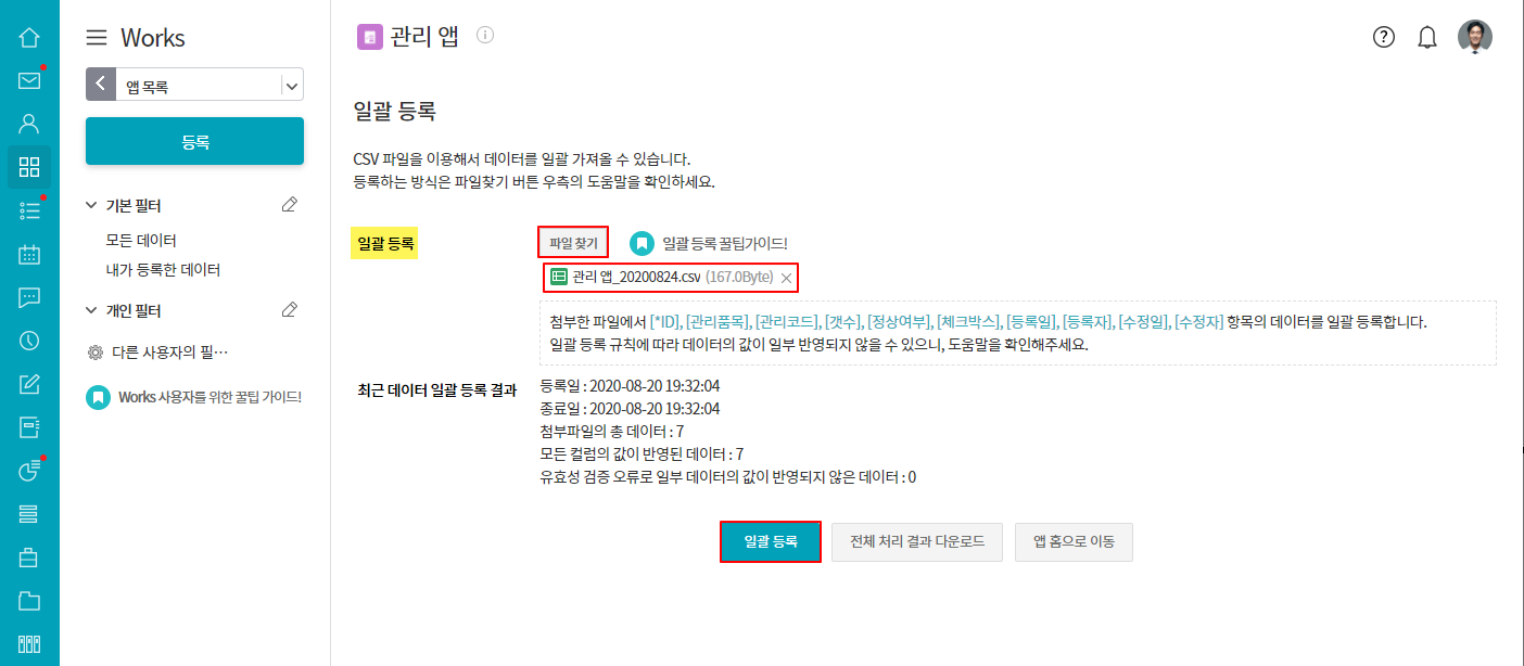 ③ 일괄 등록 ▷ 파일 찾기 ▷ csv파일 업로드 ▷ 일괄 등록