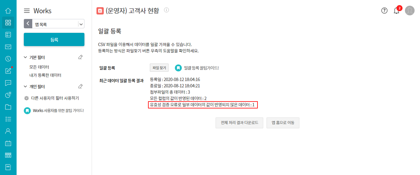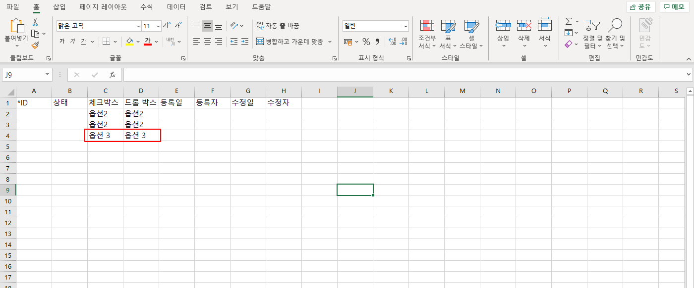 체크박스나 드롭박스의 내용도 .csv파일에 입력하여 일괄 등록할 수 있습니다.