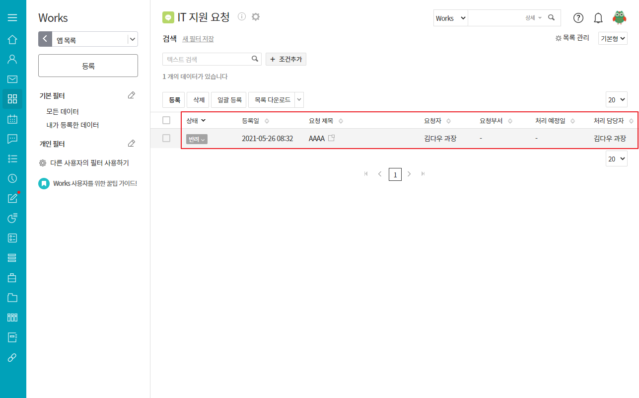 기술지원은 상단 [문의등록]를 통해 제공해드립니다.