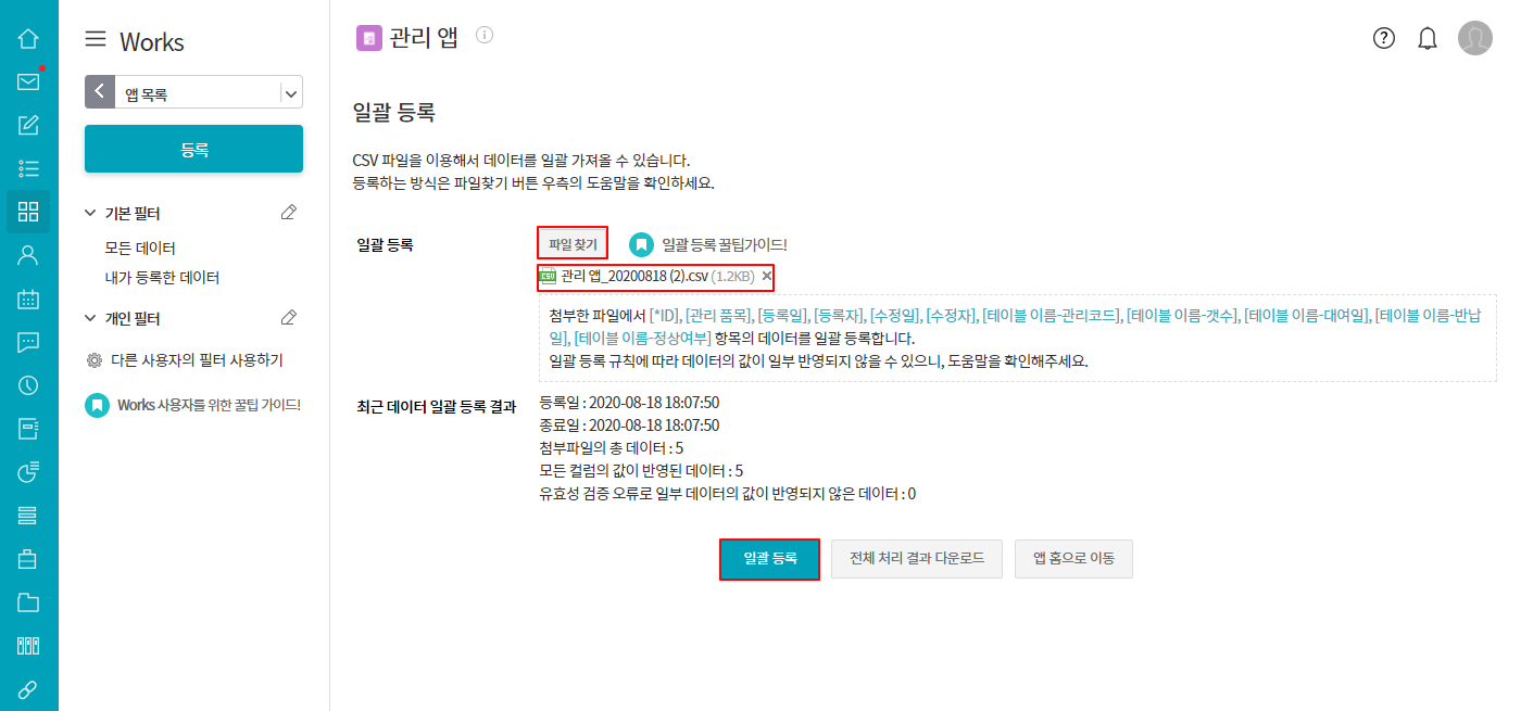 ⑦ 파일 찾기 ▷ csv 파일 업로드 ▷ 일괄 등록