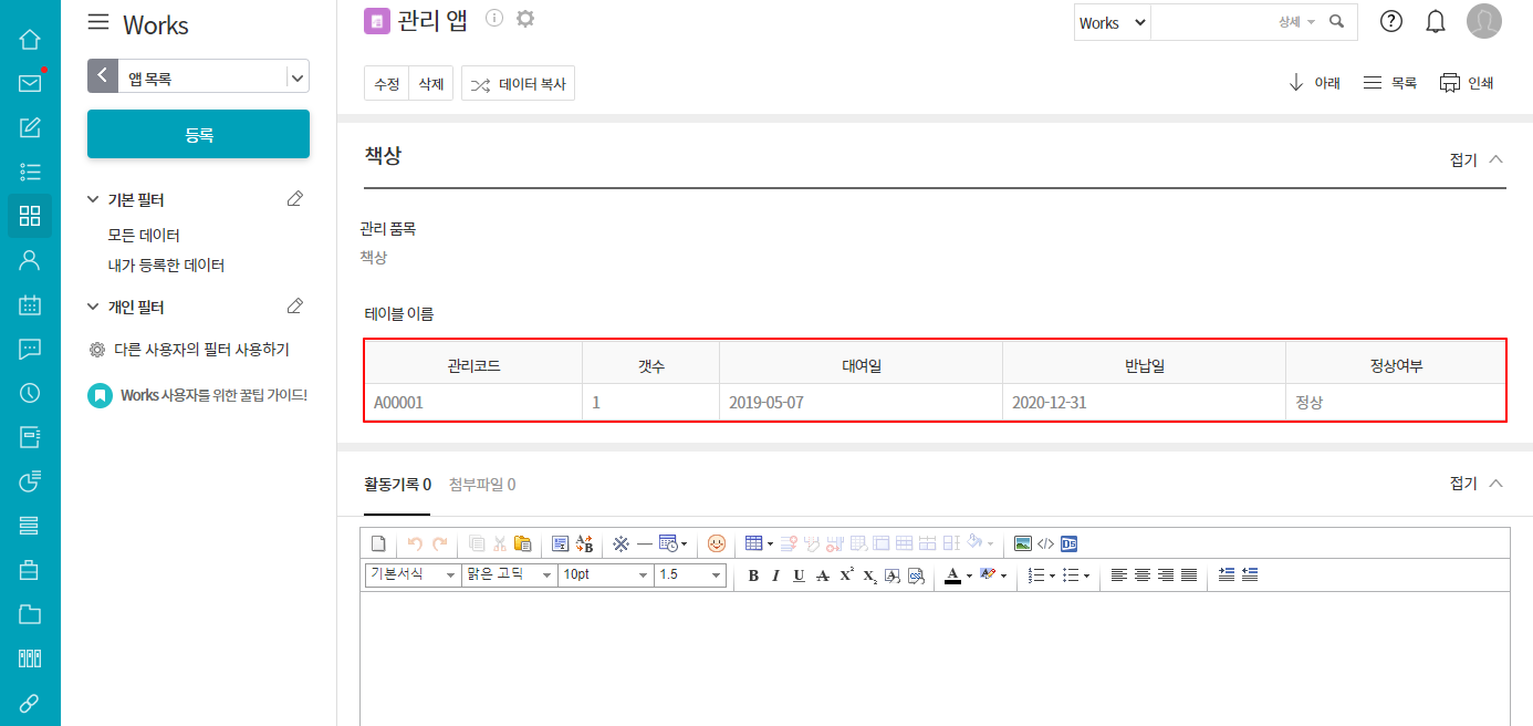 테이블 영역의 내용을 비워놓고 먼저 데이터를 일괄 등록 후