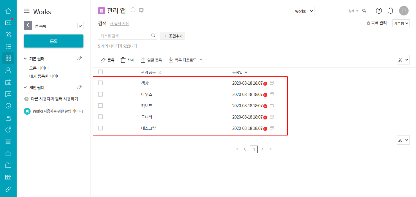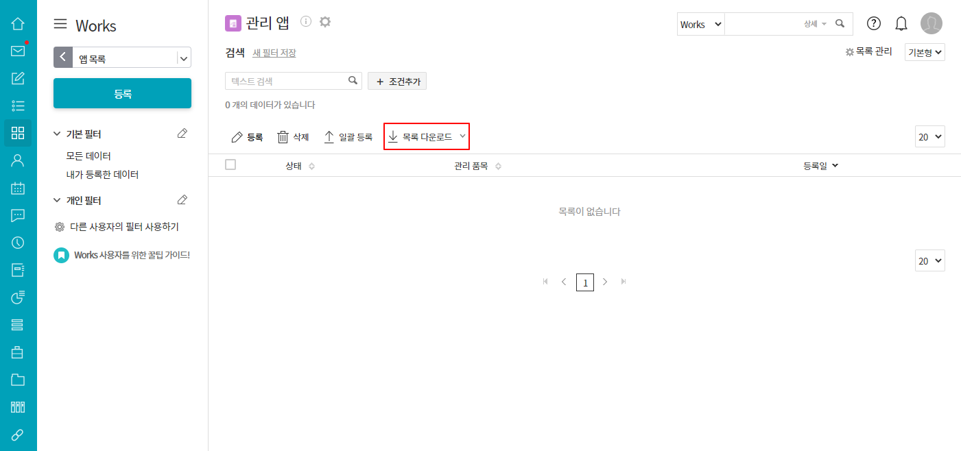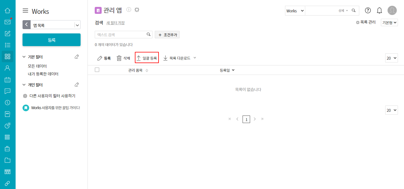 ※ 테이블 영역의 데이터가 신규인 경우는 일괄 등록할 수 없습니다.