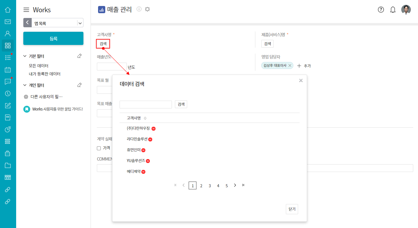 예) 기존 사용 중인 '고객사 관리'앱의 고객사명과