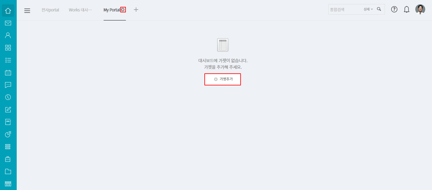 ① 홈 ▶ My Portal 우측 톱니바퀴 버튼 클릭 ▶ 가젯추가
