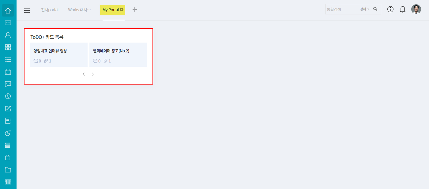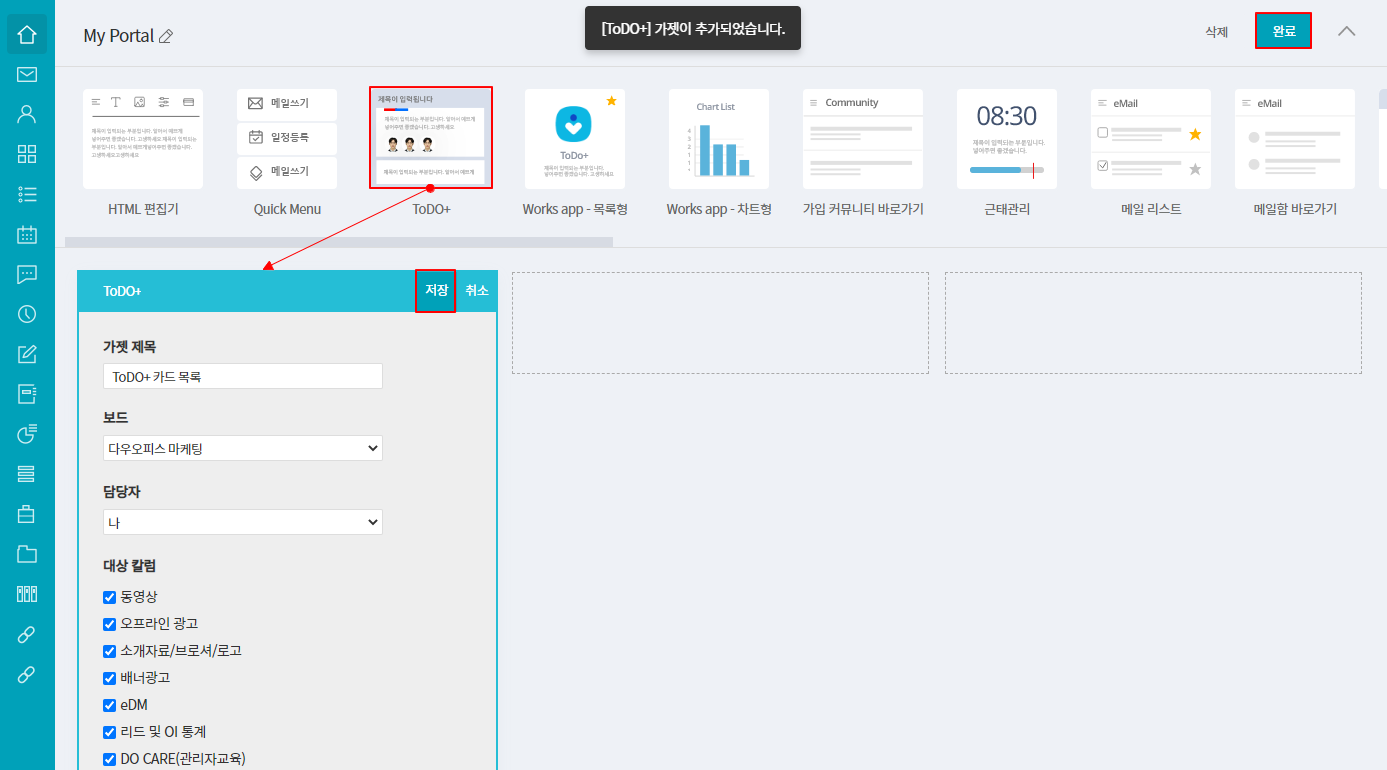 My Portal에서 ToDO+가젯을 추가하시면 홈 화면의 My Portal에서 ToDO+의 내용을 확인할 수 있습니다.