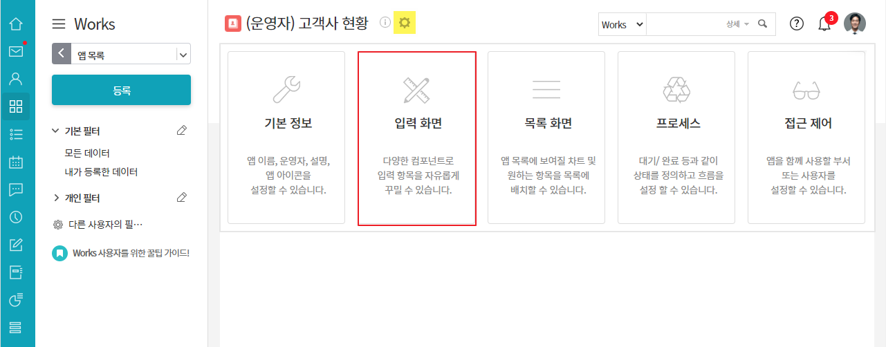 ① 앱명 옆 톱니바퀴 ▶ 입력화면