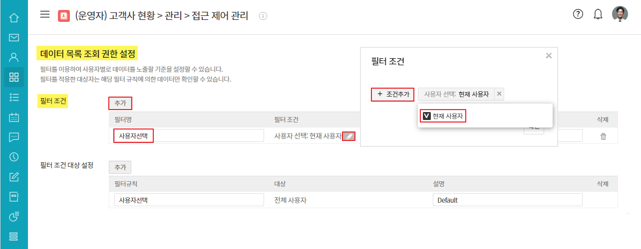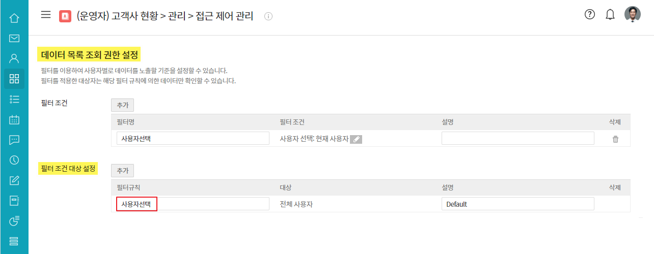 ② 데이터 목록 조회 권한 설정 ▷ 필터 조건 ▷