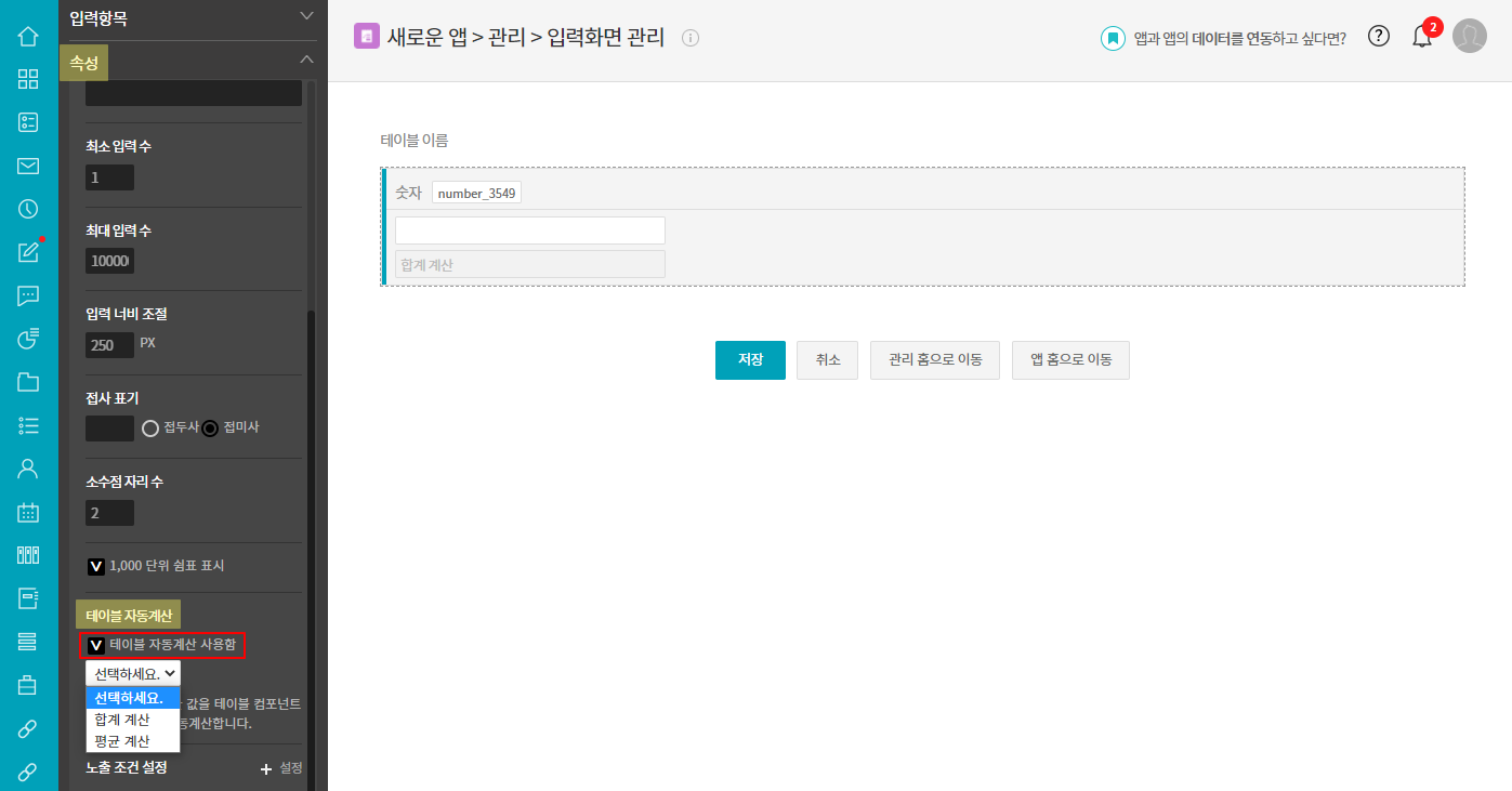 <테이블 자동계산 설정 방법 : 앱 운영자>