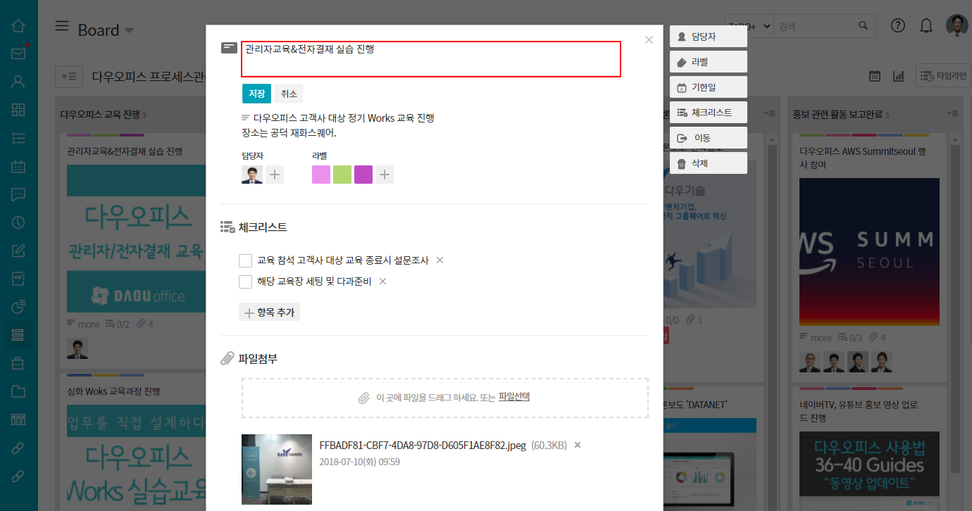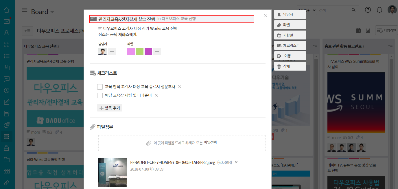 수정하고자 하는 카드를 클릭 후 상단의 카드명을 클릭하여 수정할 수 있습니다.