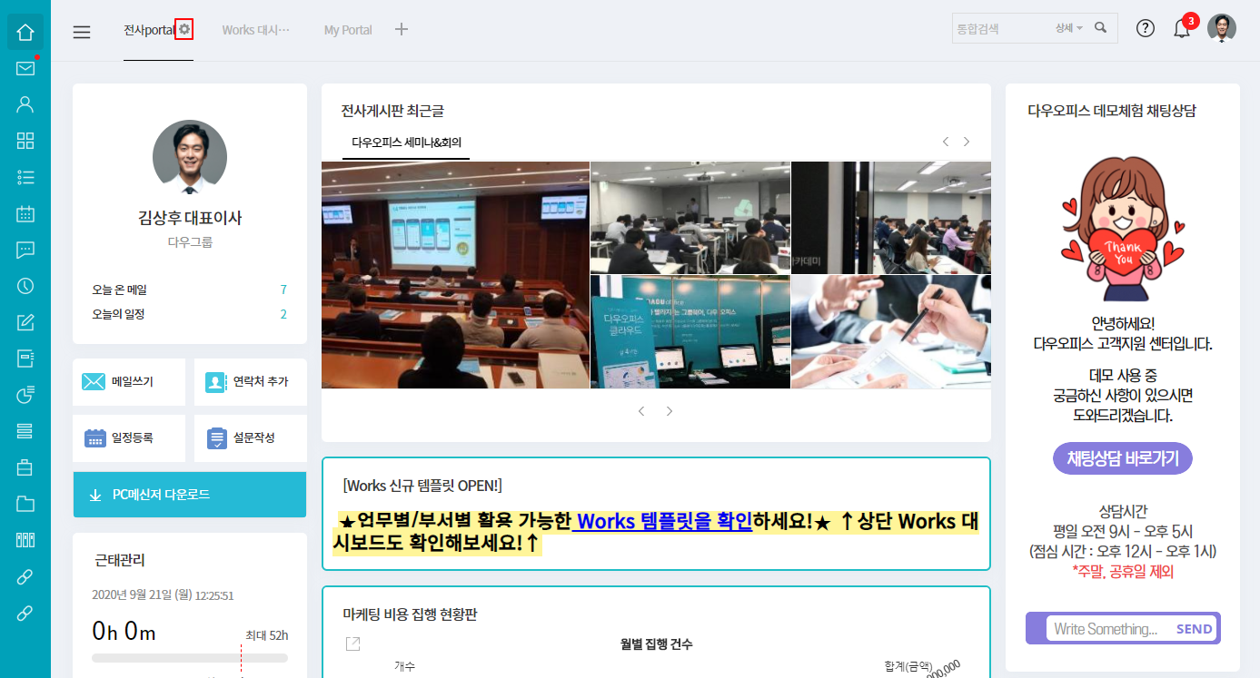 ※ 전사 Portal 우측의 톱니바퀴 아이콘은 대시보드 운영자에게만 나타납니다.