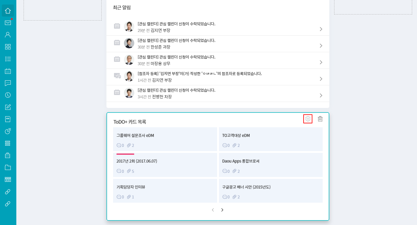 ② ToDO+ 가젯의 톱니바퀴 아이콘 클릭