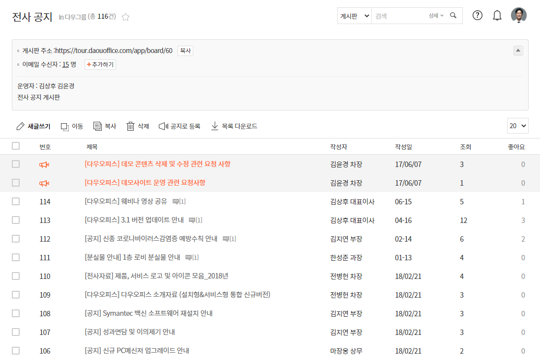 게시판은 클래식형과 피드형 두가지를 제공합니다.