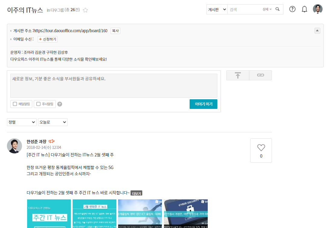 ② 피드형 : 페이스북, 트위터와 유사한 형태로 제목없이 내용을 표시합니다.