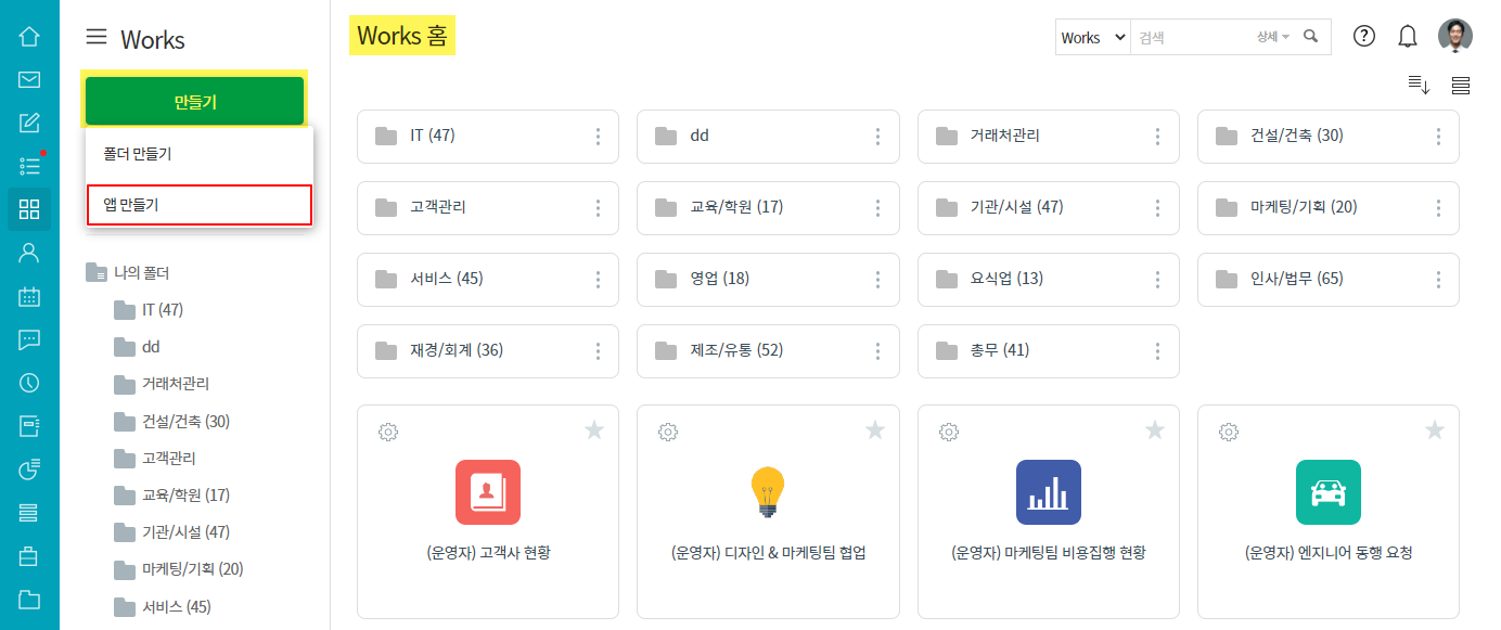 ① Works 홈 ▶ 만들기 ▶ 앱 만들기