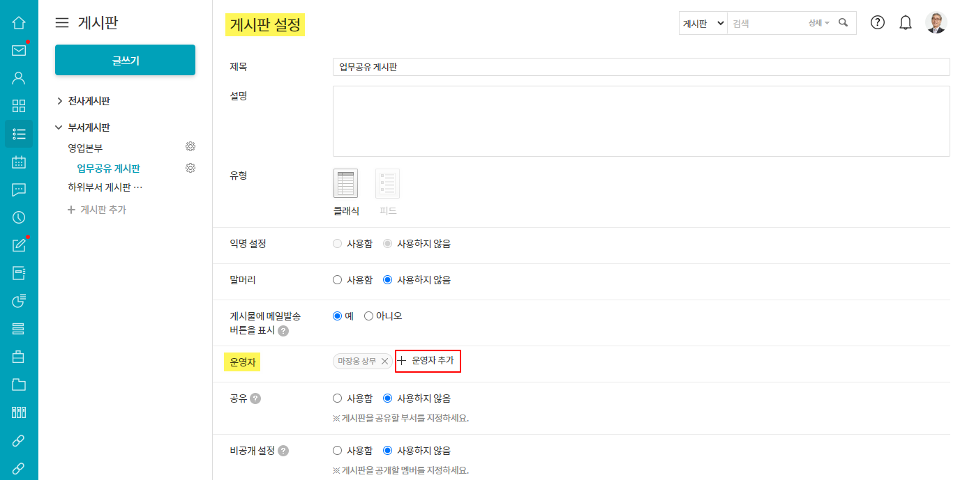<부서게시판 운영자 추가 방법 : 부서장, 부부서장>